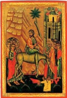 Співбезначальний і співвічносущий Син і Слово Отче, на осляті безсловесному сидячи, прийшов до міста Єрусалима. На Нього херувими від страху дивитись не можуть, а діти прославляють з пальмами і віттям, хвалу таємно співаючи: осанна в вишніх, осанна Сину Давидовому, що прийшов спасти від спокуси весь рід наш.